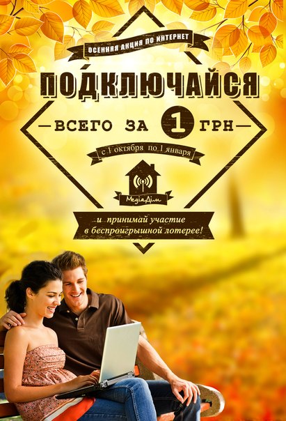 Подключайтесь к Интернет в период 01.10.2014 г. по 31.12.2014 г. всего за – 1 грн.* и примите участие в беспроигрышной лотерее, по которой вы можете выиграть: